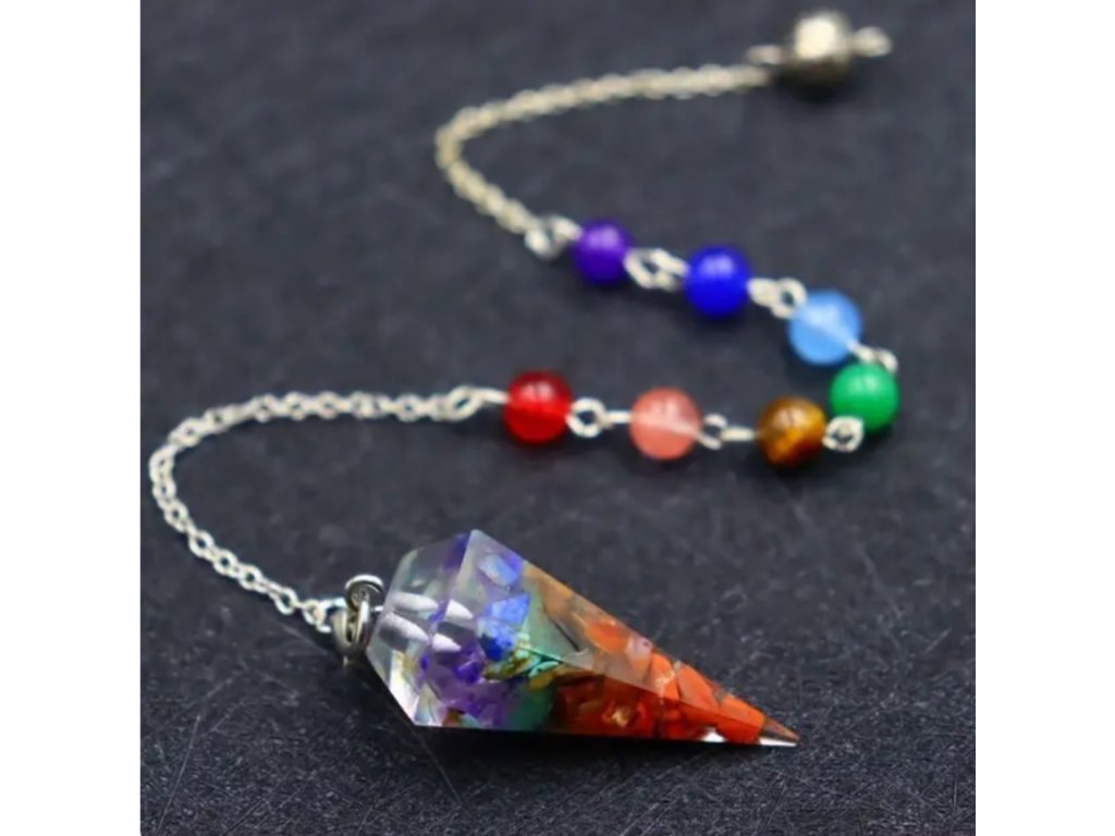Všestranný design: Díky svému mnohostrannému designu kyvadlo hladce spojuje krásu s funkčností. Každé kyvadlo obsahuje jedinečné uspořádání sedmi čakrových krystalů, z nichž každý odpovídá jinému energetickému centru v těle, což umožňuje přesnou a cílenou práci s energií.